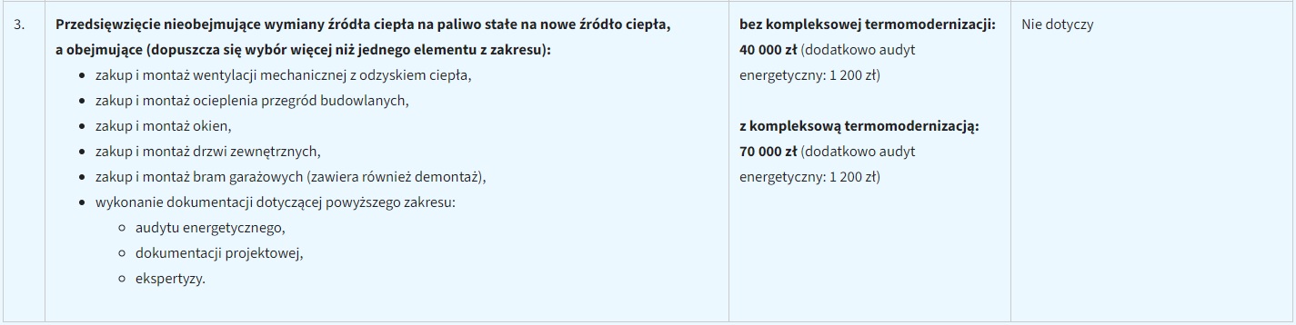 Z kompleksową termomodernizacją, bez mikroinstalacji - maksymalnie 70.000 zł
