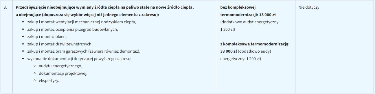 Z kompleksową termomodernizacją, bez mikroinstalacji - maksymalnie 33.000 zł