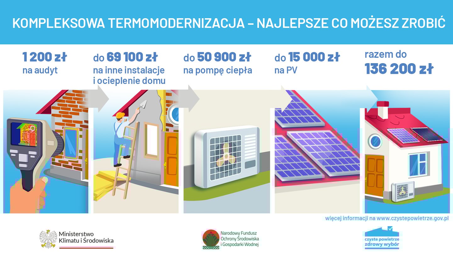 Z kompleksową termomodernizacją, bez mikroinstalacji - maksymalnie 50.000 zł